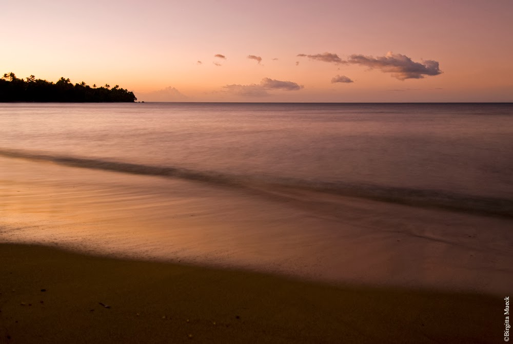 Here, in Moara, we have no waves in sight, and the wind is just enough to smoothly move the big palm trees which decoratively grow along the beach.